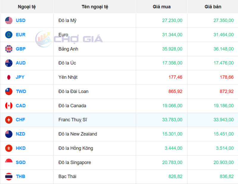 Cụ thể, tại Ngân hàng Vietcombank, tỷ giá USD hiện ở mức 26.123 - 26.3563 đồng/USD, tăng 7 đồng ở chiều mua và tăng 3 đồng ở chiều bán so với phiên giao dịch trước đó.
