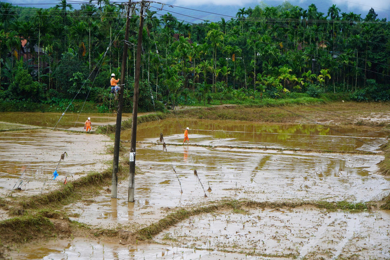 Hiện, còn gần 310.000 hộ dân, cơ quan, đơn vị tại 4 địa phương mất điện do mưa lũ phức tạp. Ảnh: Bình An